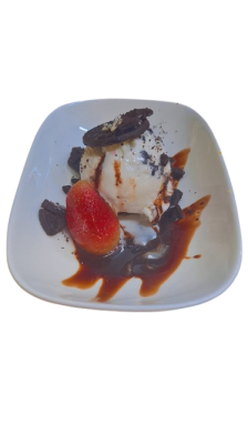 • Garnish with your choice of berries and half of a chocolate cookie on top.
